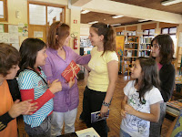 A professora virou costas e abriu a lição enquanto bebia um pouco de água.