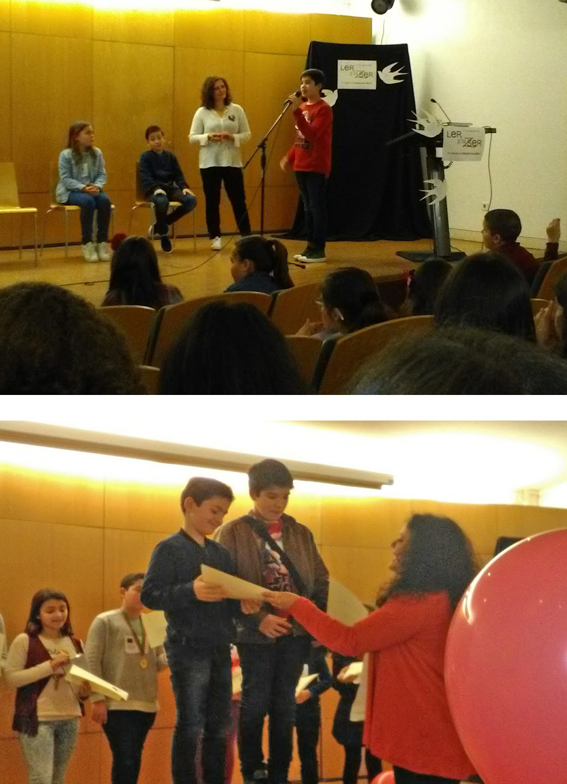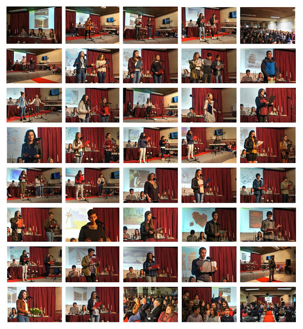 Como habitualmente, terminamos a Semana da Leitura com mais uma (Sobre)Mesa de Leituras muito participada pelos alunos do 2.º e 3.º ciclo. Perante uma plateia de cerca de 150 pessoas, os alunos provaram que ler e cantar a poesia encanta e comove quem a ouve e através dela deixamos fluir os nossos sentimentos e emoções. Se o tema era "Ler por prazer" este evento provou isso mesmo. O grande prazer que todos os alunos sentiram em declamar os poemas de autores lusófonos ou os seus próprios sonetos.