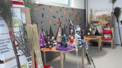 No dia 31 de outubro, comemorou-se o Halloween em todas as escolas do 1.º ciclo. Em Merelim S. Paio, a Biblioteca encheu-se de bruxinhas, fantasmas, vampiros e seres assustadores! A professora de Inglês promoveu um concurso de chapéus e vassouras, tendo-se realizado a exposição dos mesmos. Os alunos, com a colaboração das suas famílias, participaram entusiasticamente, tendo elaborado magníficos trabalhos, contribuindo para o sucesso desta atividade.